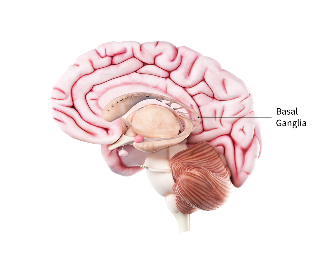The most prominent signs and symptoms of Parkinson’s disease occur when nerve cells in the basal ganglia, an area of the brain that controls movement, become impaired and/or die. Normally, these nerve cells, or neurons, produce an important brain chemical known as dopamine. When the neurons die or become impaired, they produce less dopamine, which causes the movement problems associated with the disease. Scientists still do not know what causes the neurons to die.