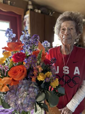 At 94, Jewell Lee is a beacon of joy, whose radiant smile lights up any room. She cherishes every moment, sharing her love, creativity, and a rich family legacy. Jewell’s greatest pride is in her family: five children, 13 grandchildren, 24 great-grandchildren, and three (soon to be four) great-great-grandchildren. Her children carry forward the values of love and devotion she has instilled in them. Jewell’s talents and passions have always been central to her life. A gifted artist and skilled quilter, her work has been celebrated at numerous shows. She co-owned "Hoots n Toots" with her daughter, Teri, where they crafted many quilting masterpieces and found great success. Each piece, whether hand-stitched or painted with care, tells a unique story. Beyond her artistry, Jewell is known for her legendary green thumb. Her vibrant flower gardens were a sea of color, and she grew and sold a stunning array of flowers, including a special collection of irises dedicated to her mother, Iris. Her love for nature is reflected in her beautiful bouquets, where every bloom is a reminder of the warmth she brings to the world. Beyond her artistic talents, Jewell’s love and wisdom have shaped her family. “Mom always made us feel special,” says Gail, Jewell’s daughter, “She’s the reason we are who we are today.”