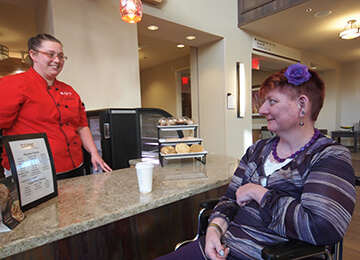 Residents, visitors, and employees will be able to purchase snacks, personal care items, cards and accessories in this retail space. In addition, residents will sell the glass art they make during therapeutic activities. The Country Store is open to the public, staffed by volunteers and adjacent to the Bistro.