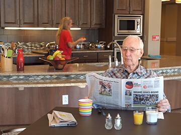 Meals will be offered in the neighborhood dining rooms with the main entrée served from the kitchen. Additional options are available from the Bistro and the Community Kitchen adjacent to every dining room.